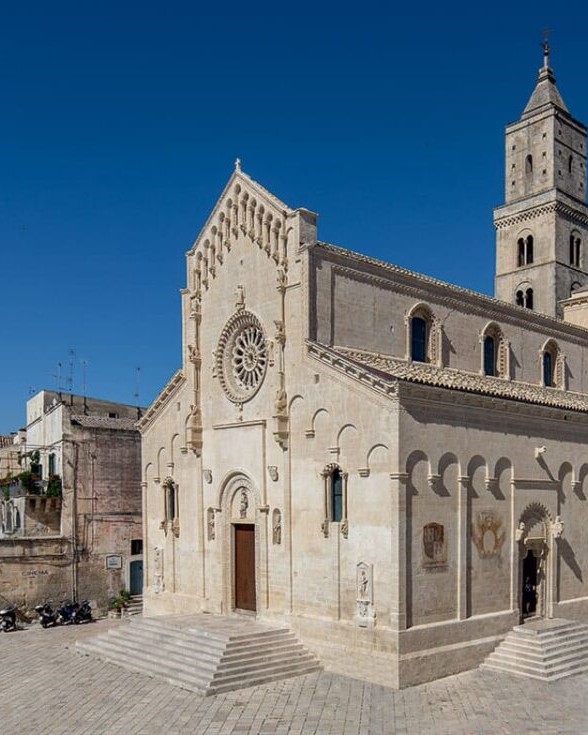 La cattedrale fù costruita in stile romanico pugliese nel XIII secolo sullo sperone più alto della civita che divide i due Sassi.